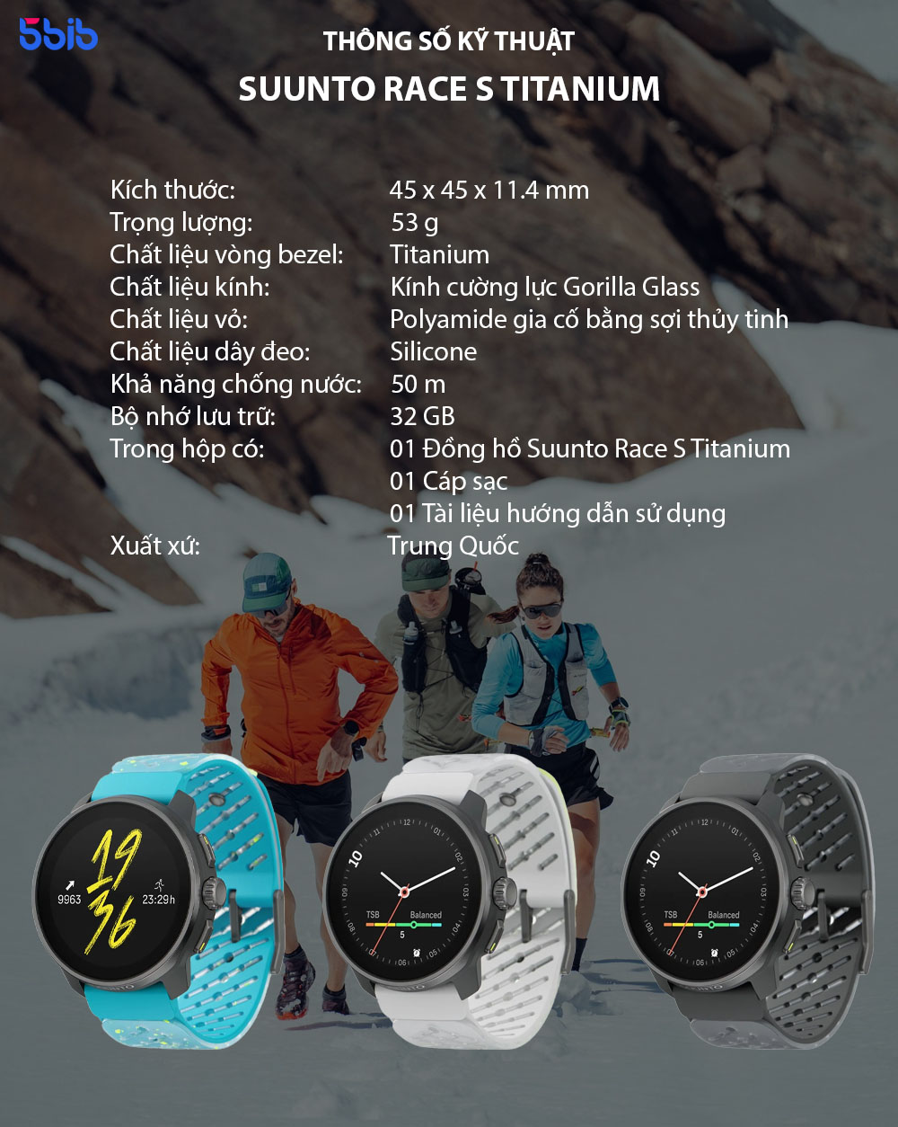 Đồng hồ thể thao GPS Suunto Race S Titanium là phiên bản cao cấp của dòng Suunto Race S với: