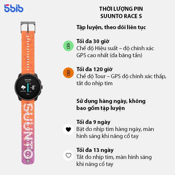 - Trọng lượng: 53g (nhẹ hơn 7g với Suunto Race S)