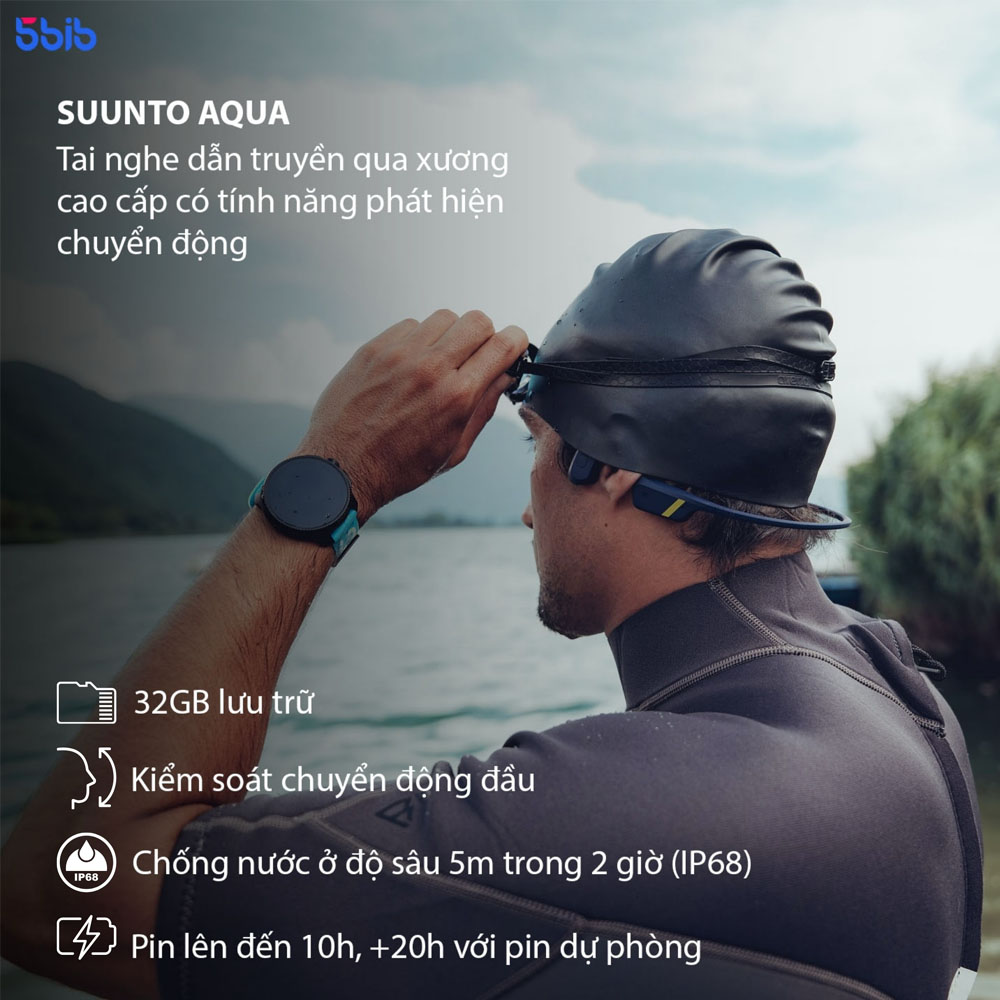 Suunto Aqua là tai nghe truyền âm qua xương thiết kế mở tai (open-ear), cho phép bạn vừa nghe nhạc vừa giữ kết nối với thế giới xung quanh. Với bộ nhớ trong 32GB, bạn có thể nghe nhạc, podcast hoặc sách nói ngay cả khi không cần mang theo điện thoại – lý tưởng cho bơi lội, chạy bộ và đạp xe.